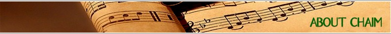 Chaim's music is heard on Jewish radio programs around the world. He has been a featured performer on Tower Air's on-board entertainment system. Chaim has recorded best-selling albums: Beyond the Clouds, Footsteps, Prayer and his latest, an instrumental Chanuka Yingles. He has also recorded the soundtrack of two children's videos, Hand in Hand and I Am a Chossid.